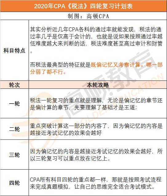 注会考试各科目内容比较多,要想掌握要每轮至少备考四轮左右,很多首次备考的考生不知道每个阶段该怎样进行,故此高顿CPA整理了相关的学习计划!一起来看下!