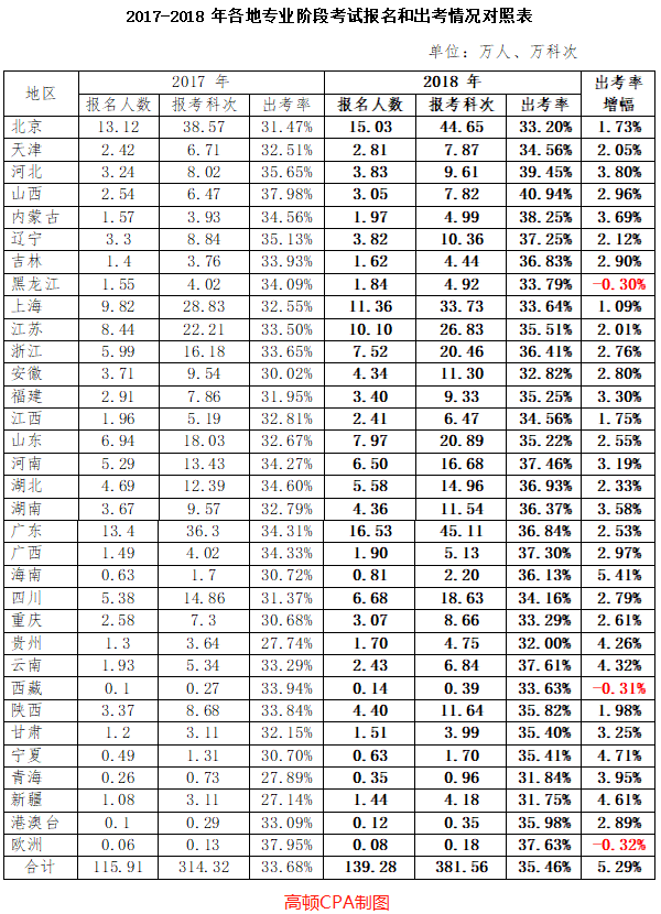 从表格数据能够看出,报考注册会计师的考生性别差异还是非常大的,女生明显高于男生,这与财会专业本身报考的女生较多有一定的关系吧。