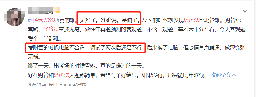 就目前考试难度情况,我们可以看看考生们的反馈: