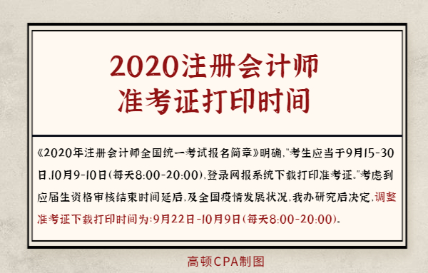 中注协发布公告调整了准考证打印时间,调整后的时间为9月22日-10月9日(每天8:00-20:00)。