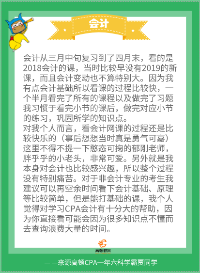 学习方法:以业务为起点;重视会计师思想;注重跨科目思维。