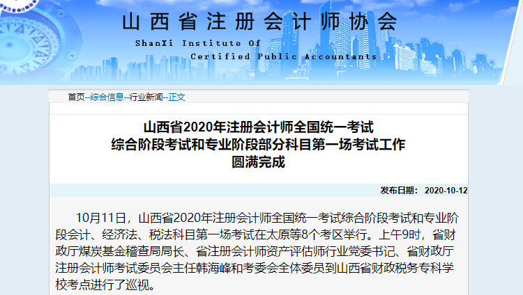 河南注协发布《2020年注册会计师全国统一考试河南考区综合阶段及专业阶段(第一场)考试顺利完成》: