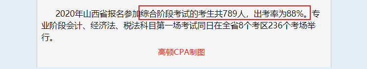 山西省2020注册会计师全国统一考试综合阶段以及专业阶段第一批考试共设8个考区,其中综合阶段参加考试的考生共789人,出考率为88%。