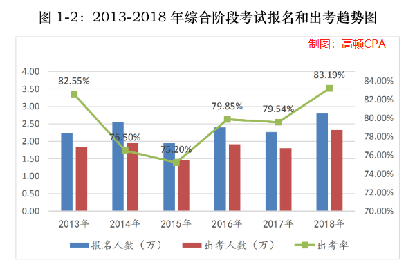 历年CPA考试出考率统计:综合阶段和专业阶段相差大!
