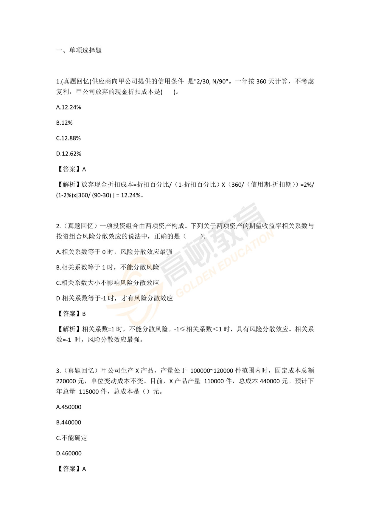 考完试大家最关心的就是考试结果了,距离考试成绩还有一段时间,但是对于刚刚结束的考试,高顿CPA老师已经整理了最新的真题+答案解析, 可以帮助已经考试的考生核对答案,也可以帮助还没有考试的考生测试下,看看如果自己考能考多少分。
