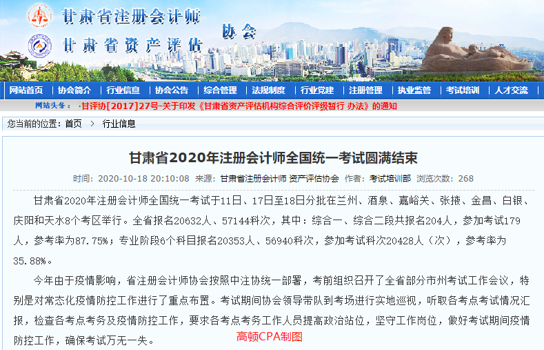 甘肃省:综合阶段参考率为87.75%,专业阶段参考率为35.88%