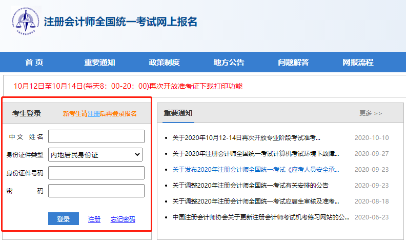 1、登录注册会计师全国统一考试网上报名系统