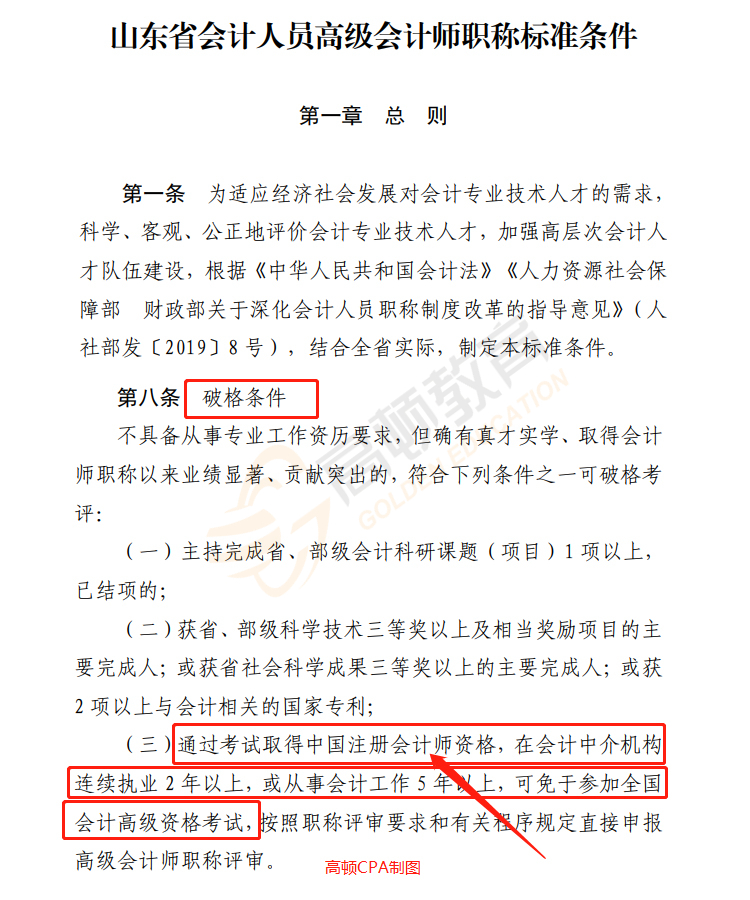 很多地区对于注册会计师证书持有者都会加以奖励,山东省也不例外,根据《山东省会计人员高级会计师职称标准条件》: