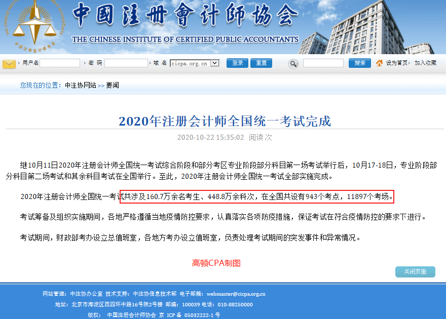 中注协:2020CPA报考考生160.7万余名考生、448.8万余科次