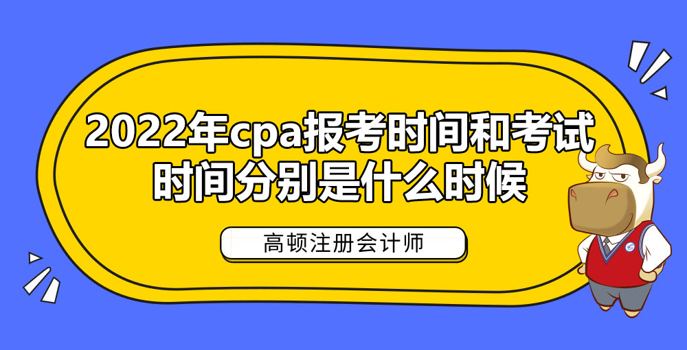 2022年cpa报考时间和考试时间都已经确定了,2022年cpa报考时间为2022年4月6-29日,交费时间为2022年6月15-30日,考试时间为2022年8月26-28日。