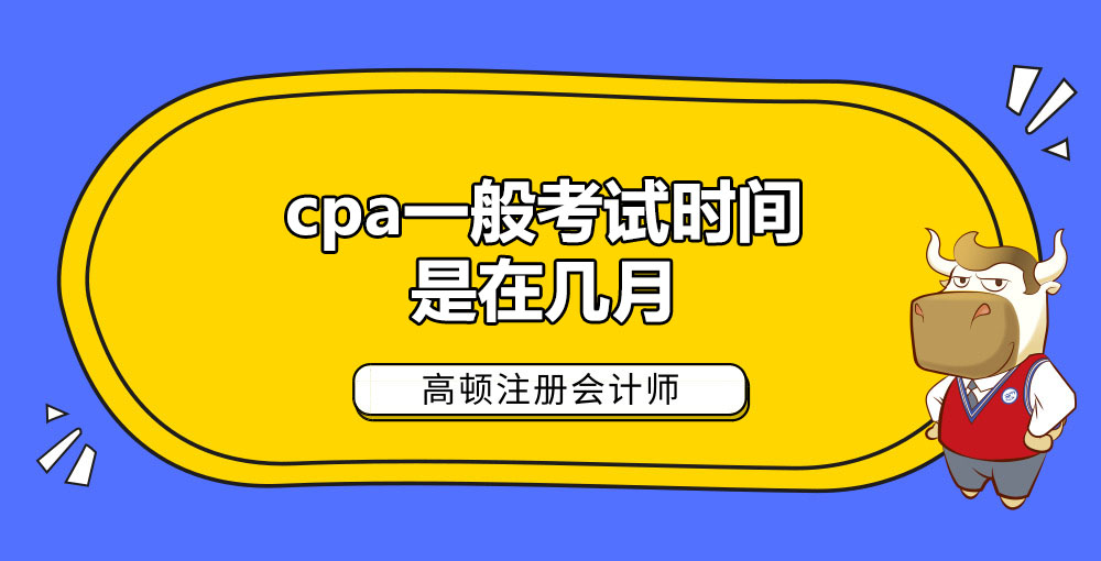cpa一般考试时间是在每年的八月份。往年,CPA考试一般是安排在十月份进行,不过2021年CPA考试提前到了八月进行,目前2022年CPA考试时间也确定在2022年的八月份。