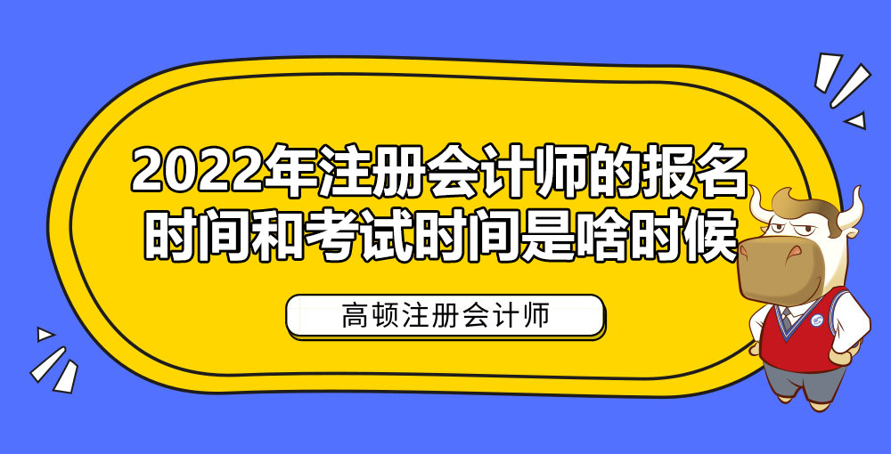 2022年注册会计师的报名时间和考试时间已经确定了,报名时间为2022年4月6日至29日,交费时间为2022年6月15日至30日,考试时间为2022年8月26日至28日。