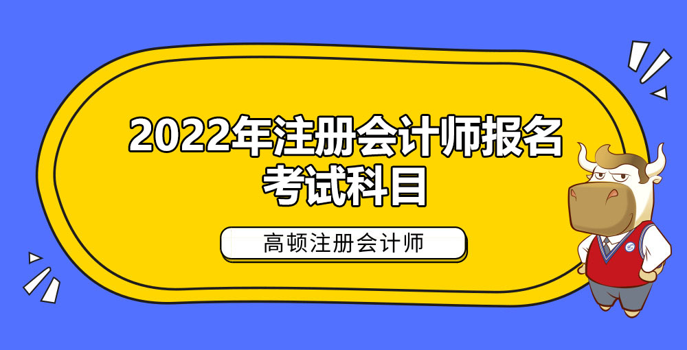 2022年注册会计师专业阶段考试科目为《审计》、《财务成本管理》、《经济法》、《会计》、《公司战略与风险管理》、《税法》,综合阶段考试科目为《职业能力综合测试(试卷一)》、《职业能力综合测试(试卷二)》。