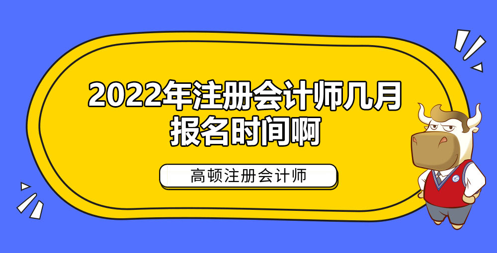 2022年注册会计师报名时间在2022年4月,具体时间为2022年4月6-29日,交费时间为2022年6月15-30日。