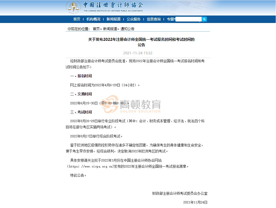 2022年注会网上报名时间为2022年4月6-29日(24小时)。
