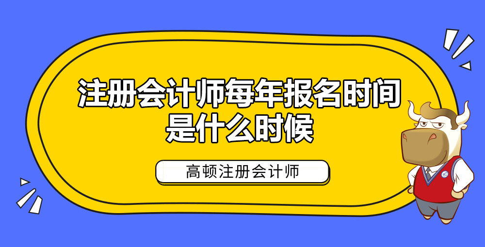 注册会计师每年报名时间是每年的4月份左右,像2021年注册会计师考试的报名时间就安排在2021年4月1-2日,4月6-30日,目前2022年注册会计师考试报名时间也已经确定在2022年4月6-29日。