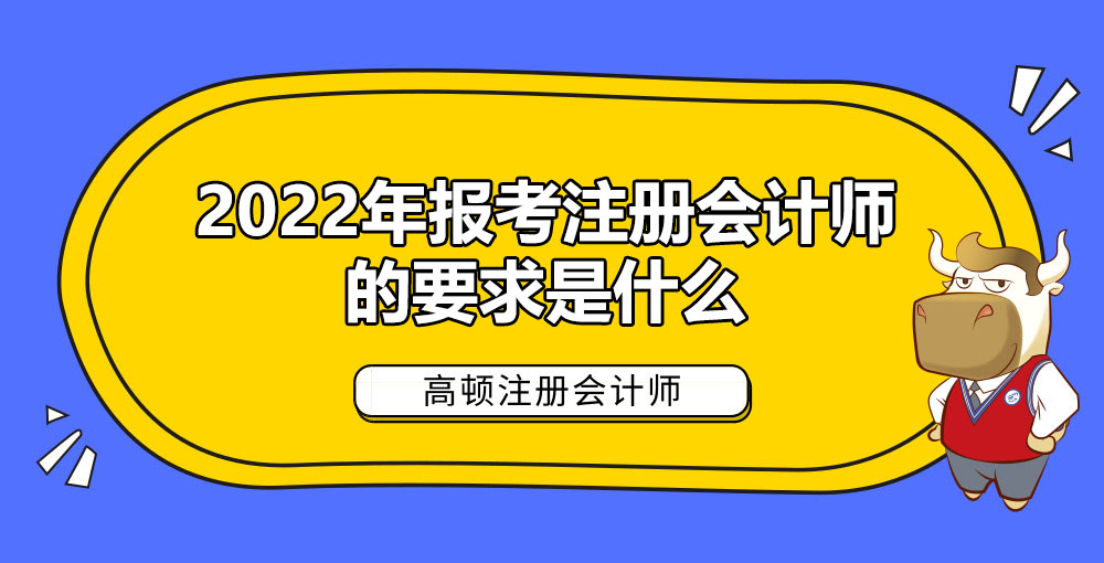 2022年报考注册会计师的要求是具有高等专科以上学校毕业学历、或者具有会计或者相关专业中级以上技术职称,符合条件的小伙伴可以在2022年4月6日至4月29日报考cpa考试