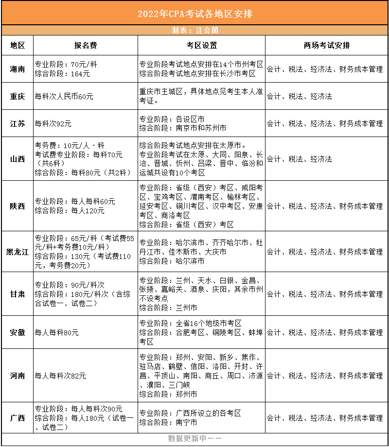 注册会计师考试报名费用已经有部分省份出来了,大家可以看一下: